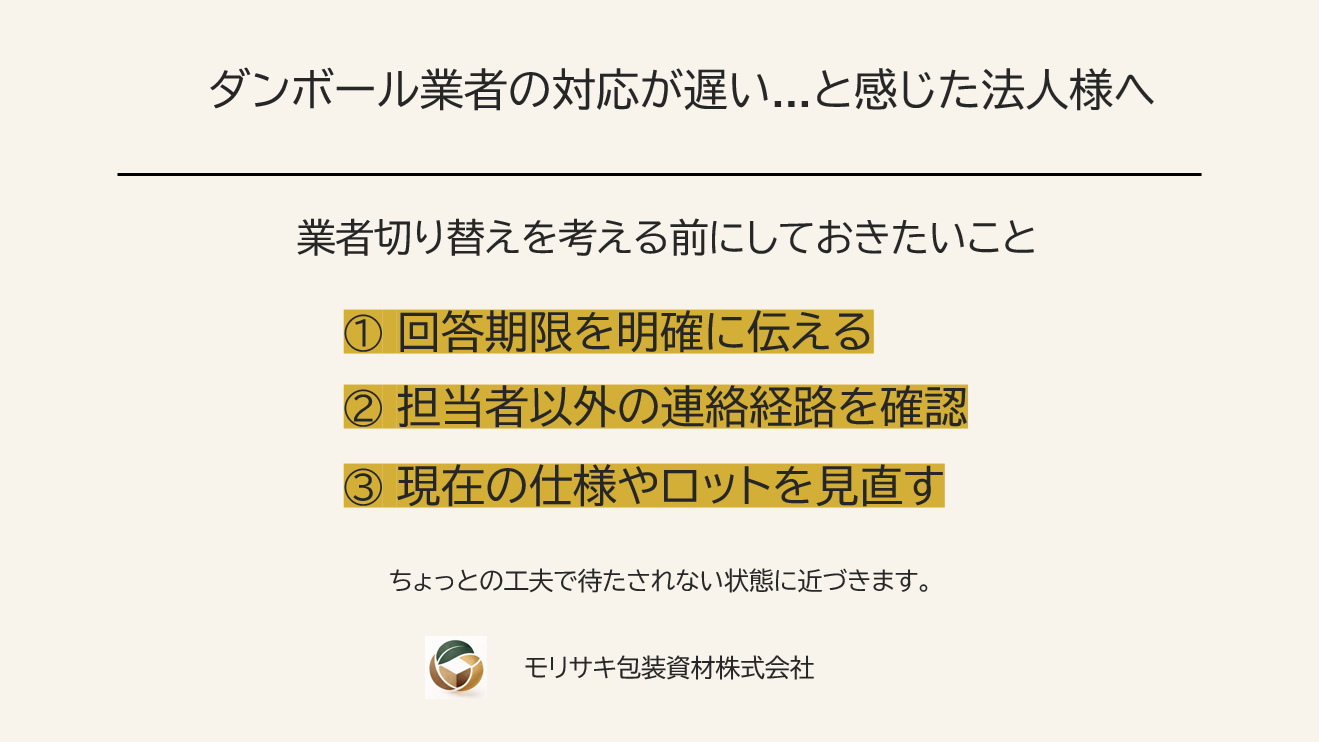 とはいえ、すぐにダンボール業者を切り替えることが正解とは限らないのです。