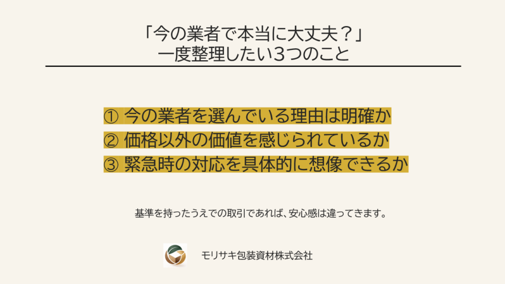 業者を変えるかどうかを考える前に、一度整理してみたいのは次の3点です。